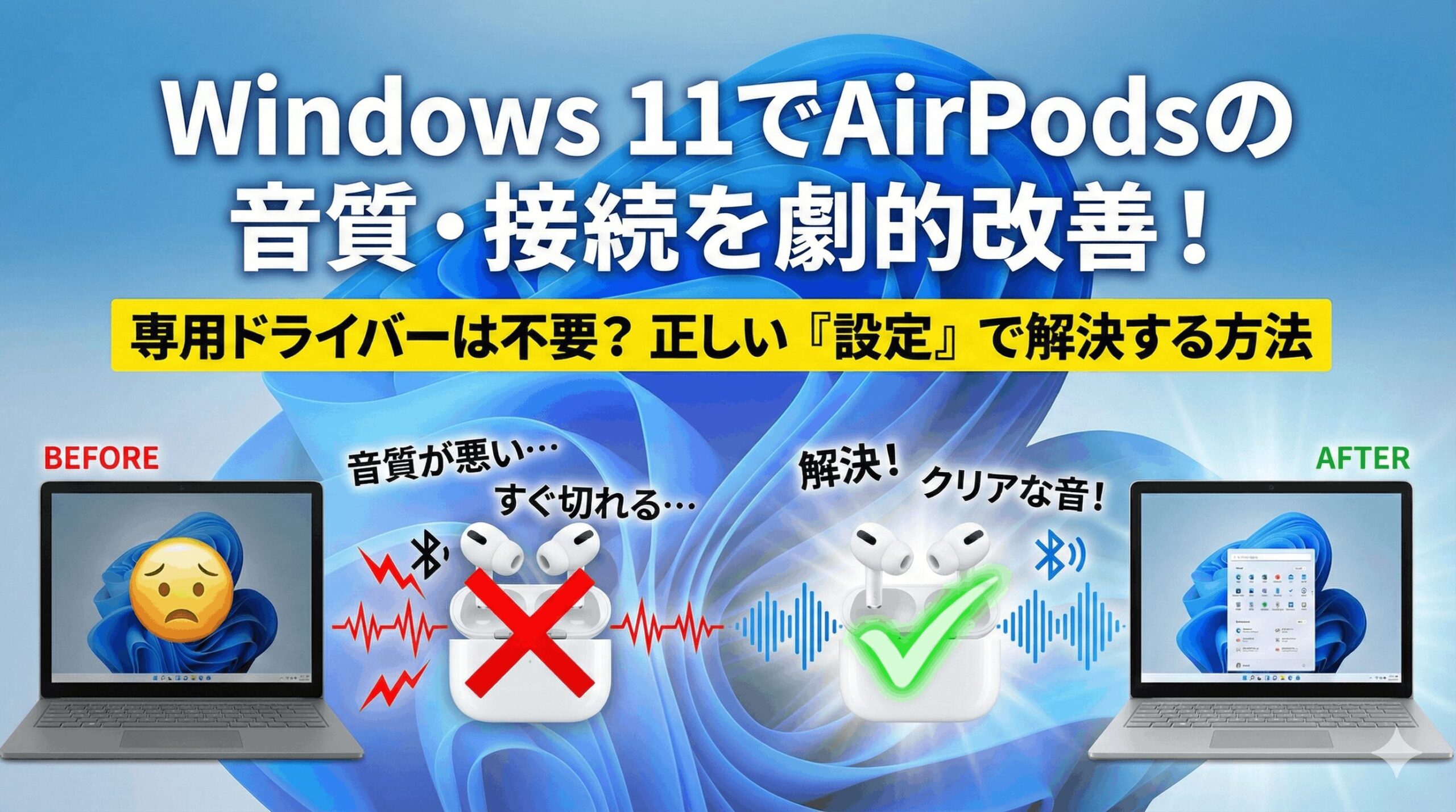 Windows 11でAirPodsを使いこなしたいのに、なぜか接続がブツブツ切れたり、音がガサガサで困っていませんか。Windows 11のAirPodsドライバーという専用のソフトを探しても見つか ...