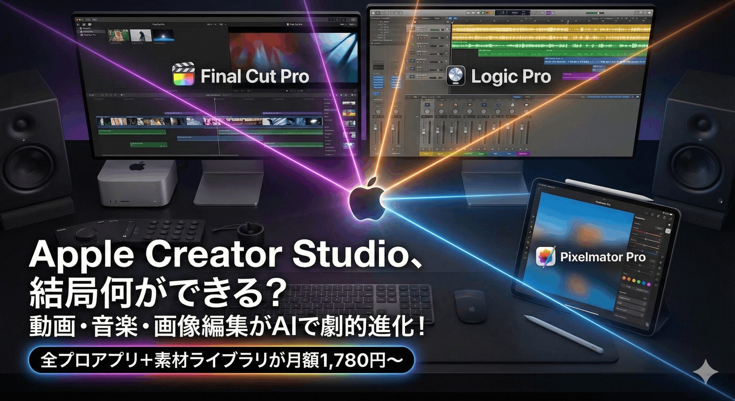 こんにちは!パソガジェなびのkeitoです。ついにAppleから、クリエイター待望の統合サブスクリプション「Apple Creator Studio」が発表されましたね。これまでFinal Cut P ...