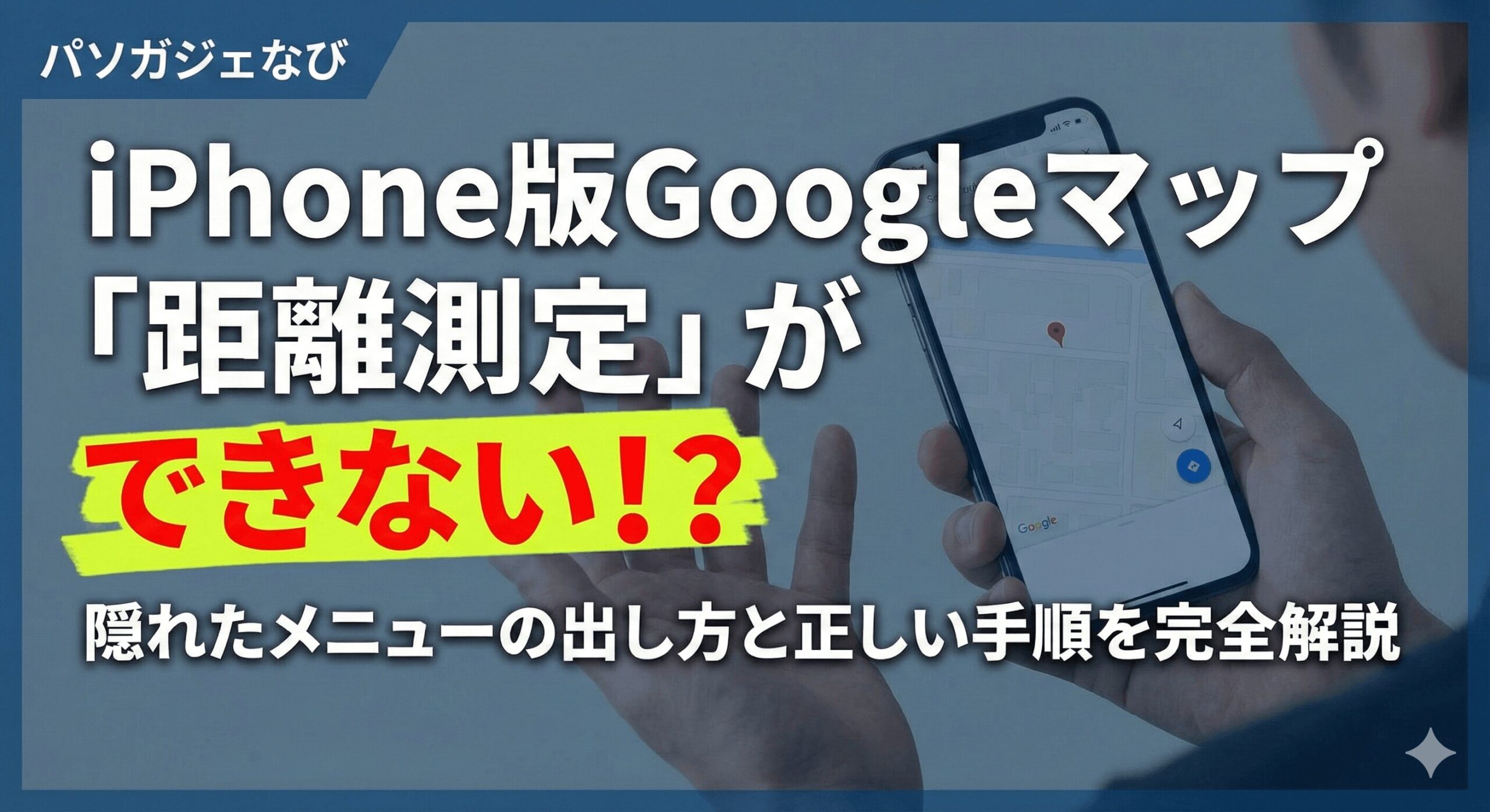 Googleマップの距離測定がiPhoneでできない時の原因と解決策 こんにちは、パソガジェなびのkeitoです。普段からiPhoneでGoogleマップを使い倒している私ですが、たまに「この場所から ...