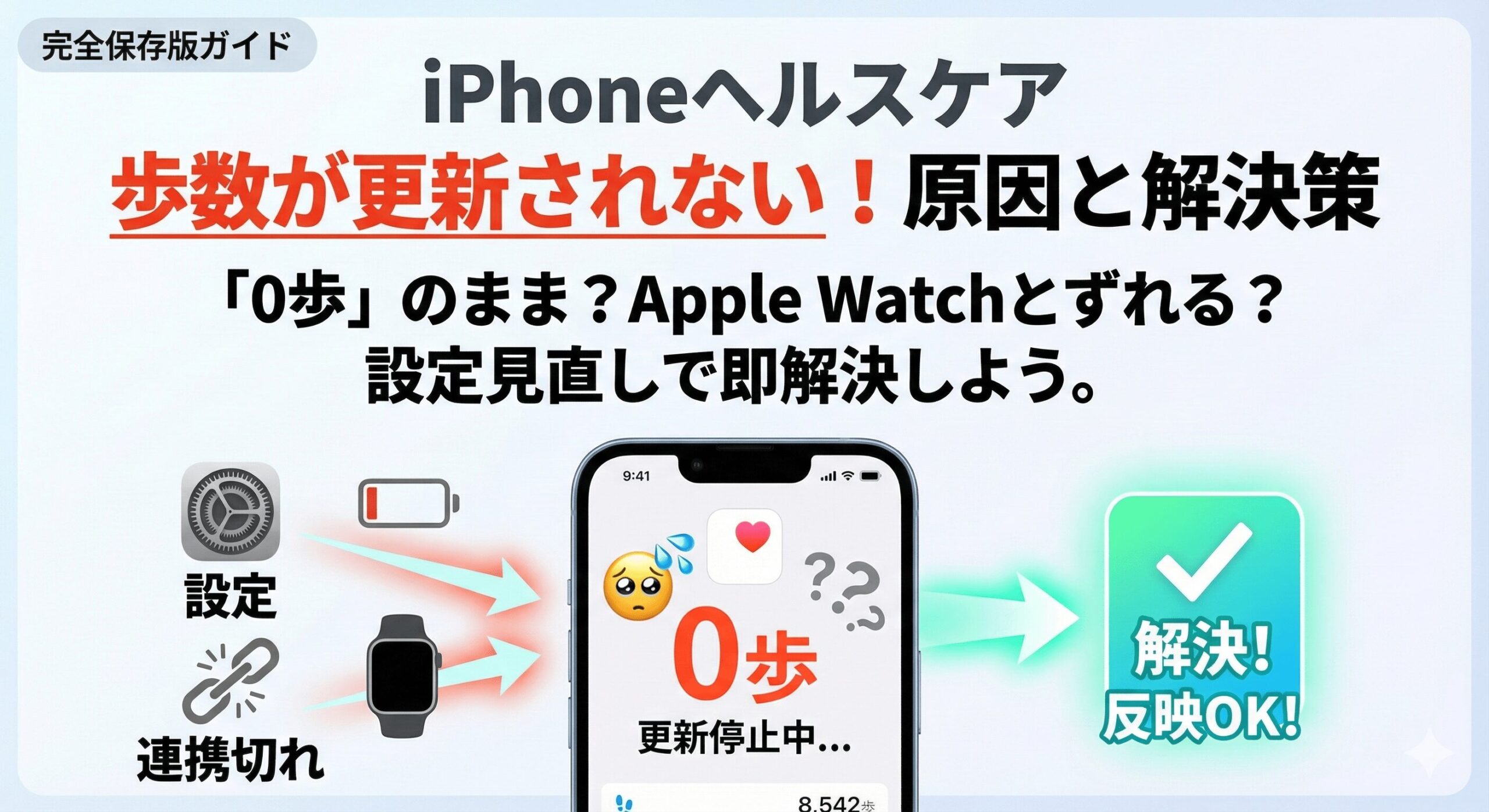 こんにちは、パソガジェなびのkeitoです。iPhoneを手に取ってヘルスケアアプリを開いたとき、歩数が更新されないとガッカリしますよね。特に、歩数がお金やゲームの報酬に直結しているなら、なおさら死活 ...