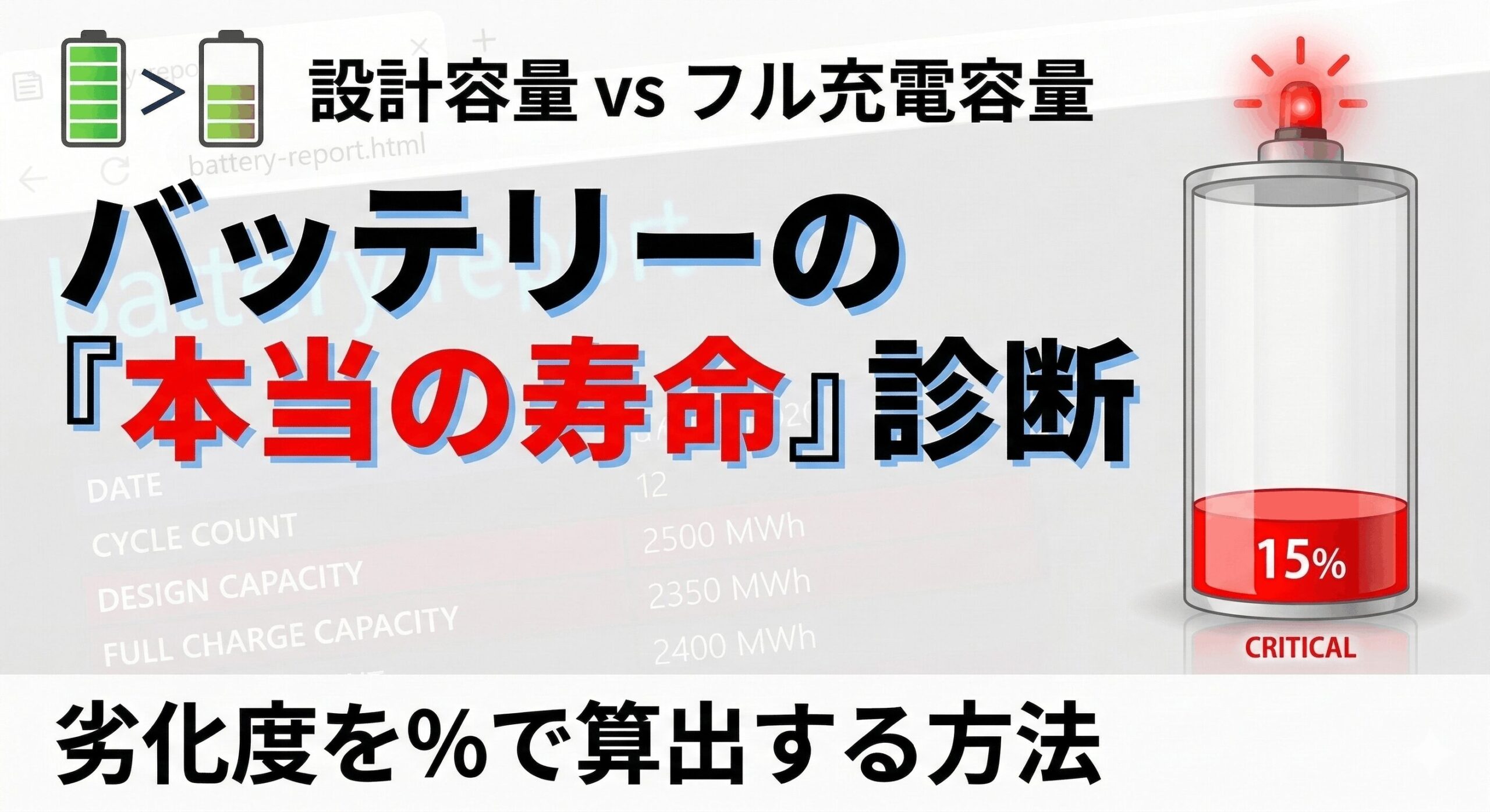 こんにちは、パソガジェなびのkeitoです。最近、お使いのノートPCの電池持ちが悪くなったなと感じることはありませんか。Windows 11には、標準で非常に詳細なバッテリー診断データを抽出する機能が ...