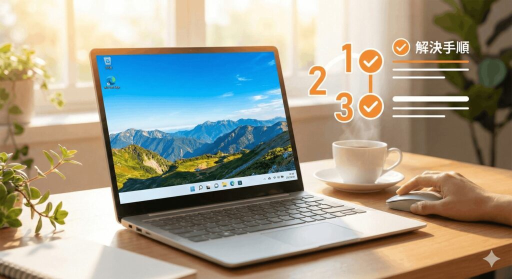 まずは一番簡単な「描画のリセット」を試しましょう。キーボードで Win + Ctrl + Shift + B を同時に押してみてください。画面が一瞬暗くなりますが、これはグラフィックスドライバーを再ロードする魔法のコマンドです。これだけで背景が復活することも多いですよ。