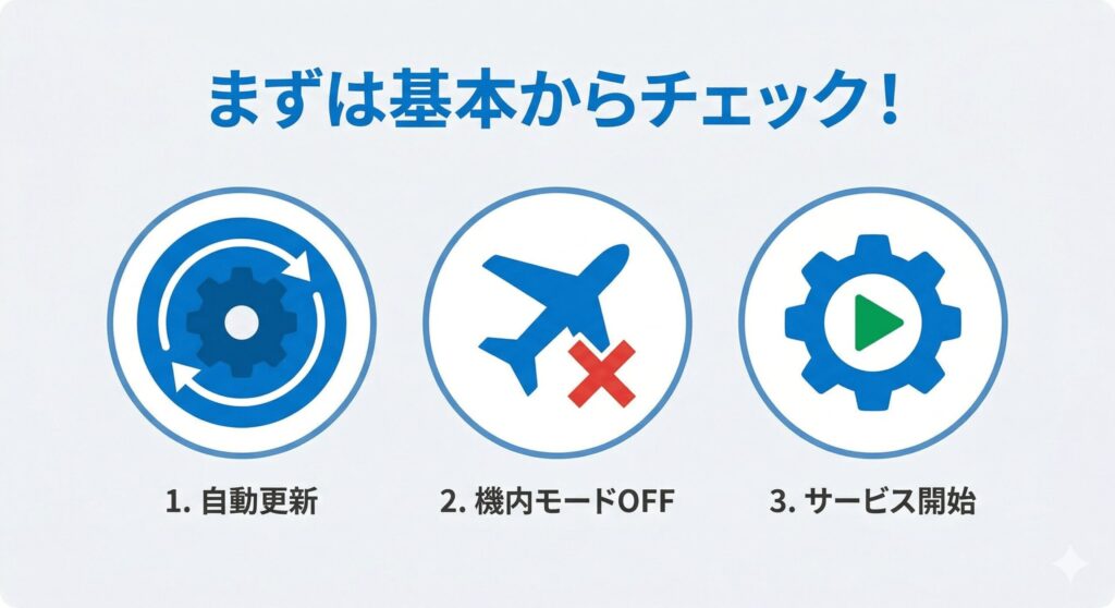 アイコンが消えたり設定項目がないといった症状は焦ってしまいますが、機内モードの誤作動といった簡単な見落としから、サービスの再稼働、さらには完全シャットダウンによるハードウェアのリセットまで、順序立てて一つずつ原因を潰していくことで、多くはご自身の力で解決可能なものです。トラブルシューティングは焦らず現状を把握することから始まります。