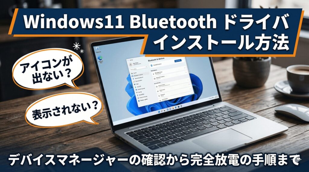 こんにちは、パソガジェなびのkeitoです。最近、お気に入りのワイヤレスイヤホンやマウスをパソコンに繋ごうとしたら上手くいかなくて困っていませんか。ネットでwindows11 Bluetooth ドライバ インストール方法と調べていると、アイコンが表示されないトラブルや、デバイスマネージャーに表示されないといった焦るような状況に直面している方も多いかなと思います。