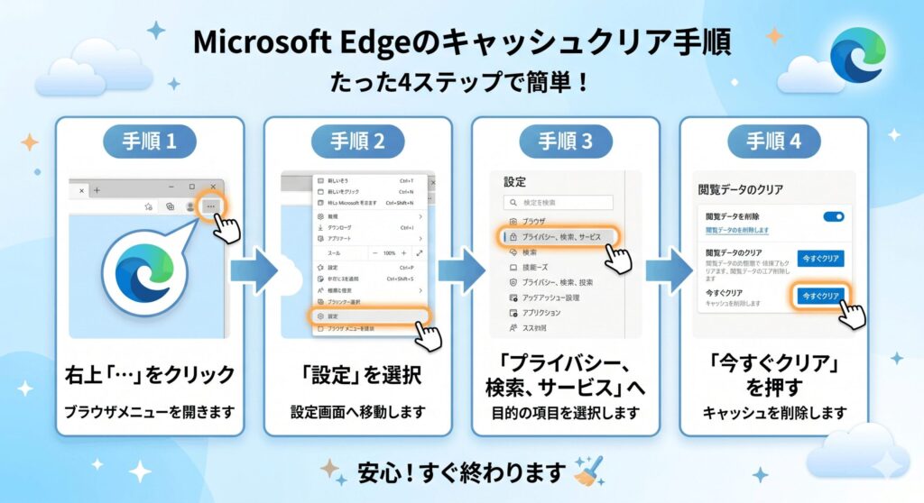 せっかくキャッシュを消したのに反映されないといったトラブルや、ログイン情報が消えてしまうデメリットが心配な方も大丈夫です。この記事を読めば、初心者の方でも迷わずにメンテナンスができるようになります。私と一緒に、Edgeをサクサクの状態に戻していきましょう。ここ、気になりますよね。まずは今回の記事で学べるポイントを整理しました。
