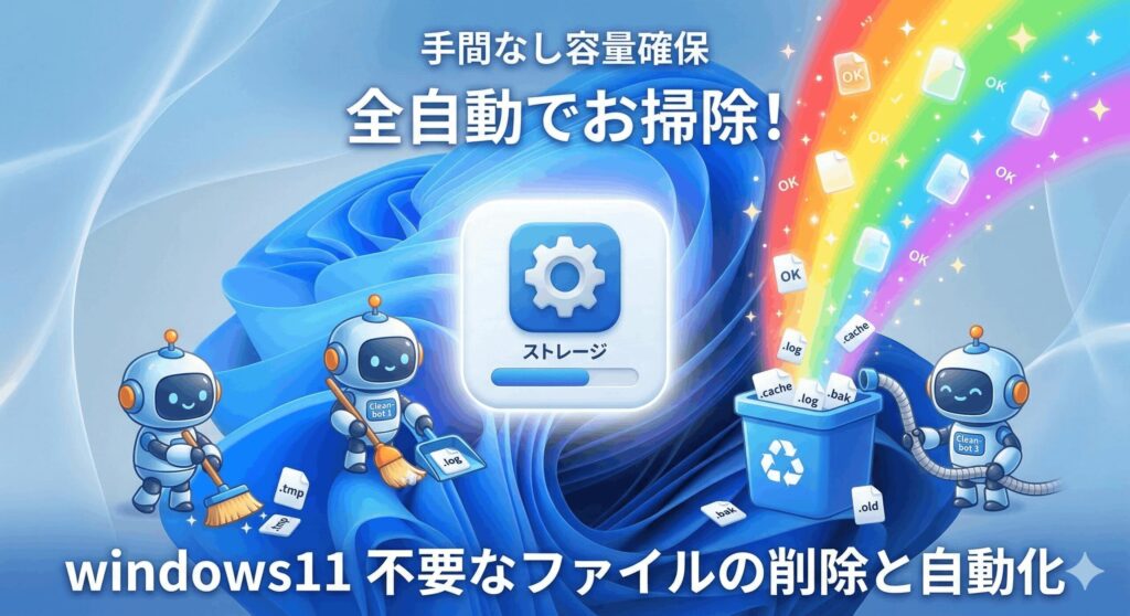 Windows 11には、ユーザーが何もしなくてもバックグラウンドでシステムを綺麗に保ってくれる「自律的な管理機能」が備わっています。まずは、OSの標準機能を最大限に活かして、手間をかけずに容量を確保する方法を見ていきましょう。