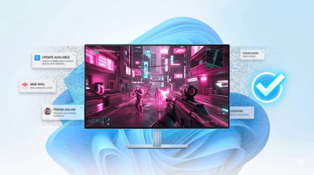 白熱した撃ち合いの最中や、ボス戦の大事な場面で、画面右下からシステムアップデートやメール受信の通知ポップアップが出てきて、一瞬画面がカクッとした経験はありませんか?あれ、本当に萎えますよね。通知が表示される際、OSはオーバーレイをレンダリングするためにDesktop Window Managerのリソースを強制的に奪うため、一瞬の深刻なフレームドロップが発生してしまうんです。
