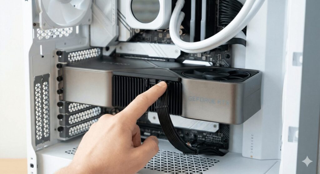 電源ユニット(PSU)のパワー不足も大きな要因です。特に最新の12VHPWRコネクタは、カチッと音がするまで奥まで挿さっていないと認識不良だけでなく、最悪の場合は発熱でコネクタが溶けるリスクもあります。