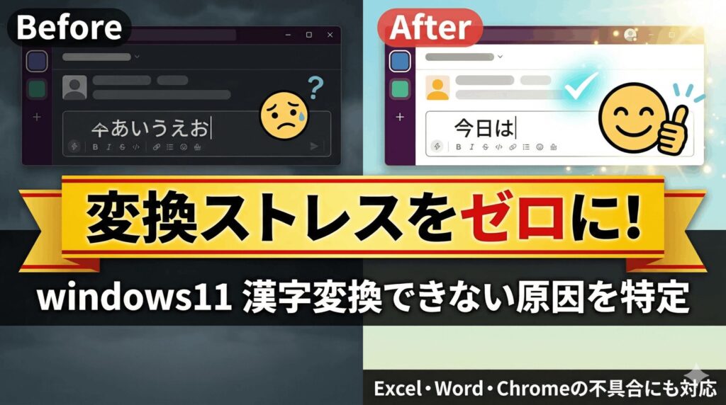こんにちは、パソガジェなびのkeitoです。最近パソコンで文字を打とうとしたらwindows11 漢字変換できなくなったと困っていませんか。突然スペースキーが効かない状態になったり、サジェスト出ないことでイライラしてしまう気持ち、よく分かります。他にも、ctfmon.exeの実行方法が分からずに途方に暮れてしまったり、特定のソフトやExcel、Word、Chromeなどで変換できないという厄介な問題が起きることもあります。