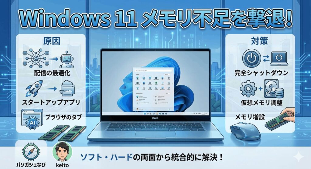 PCで作業しているときに、突然画面にWindows 11でメモリが不足していますという警告が出てくると、本当に焦りますよね。