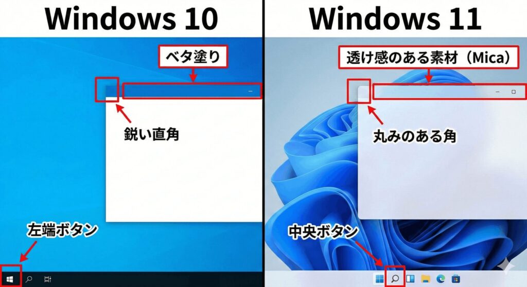 Windows 10や11の違いを比較!見た目の変更点