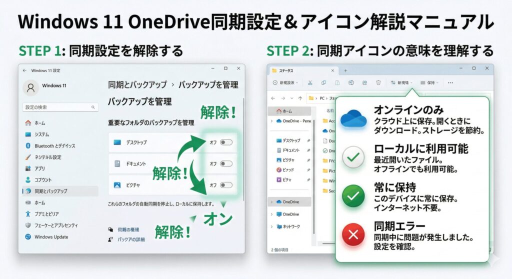 クラウドとパソコンを繋ぐ便利な機能ですが、初期設定のままだと思わぬトラブルになることも。ここでは、仕組みの基本からストレージを無駄なく使うための設定方法まで、詳しく解説していきますね。