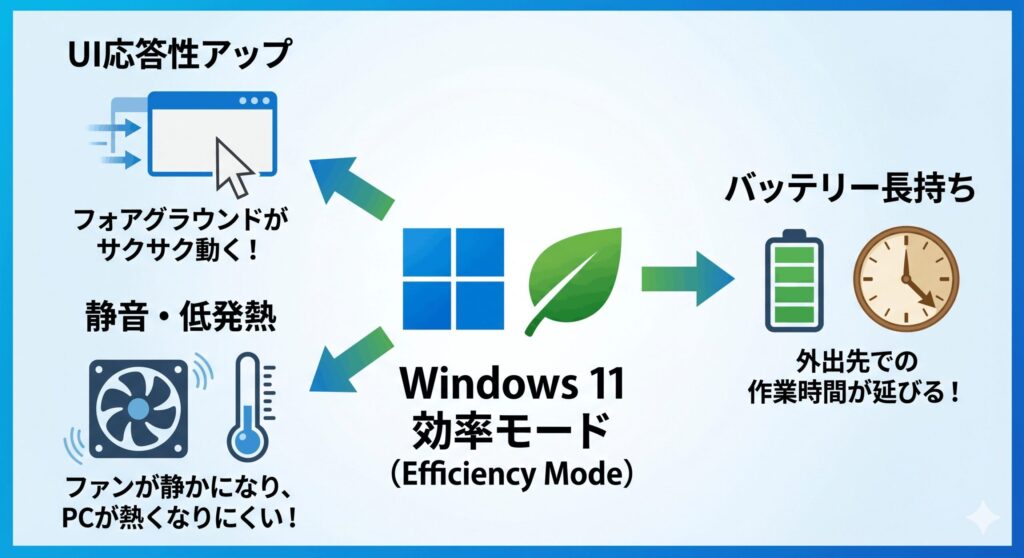 今回は、Windows 11のプロセス効率モードについて、基本の仕組みからトラブル時の対処法まで、私自身の検証データをもとに詳しくお話ししていきます。この記事を読めば、あなたのPCをよりスマートに使いこなせるようになるはずですよ。