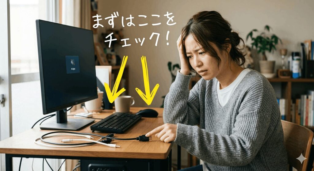 パソコンの音が消えるとすぐにシステムのエラーを疑ってしまいますが、実は単なる物理的な接続不良が原因というケースが非常に多いんです。デスクトップPCの場合は、本体とモニターを繋ぐHDMIケーブルやDisplayPortケーブルが、掃除の時などに少し引っ張られて緩んでいることがあります。