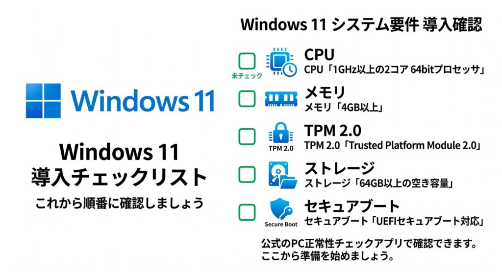 Windows 11にアップグレードできるかどうかを判断するには、まずMicrosoftが定めている「最小システム要件」を知る必要があります。ここでは、公式ツールを使った最も簡単な確認方法から、見落としがちなCPUやセキュリティチップの基準について深掘りしていきますね。