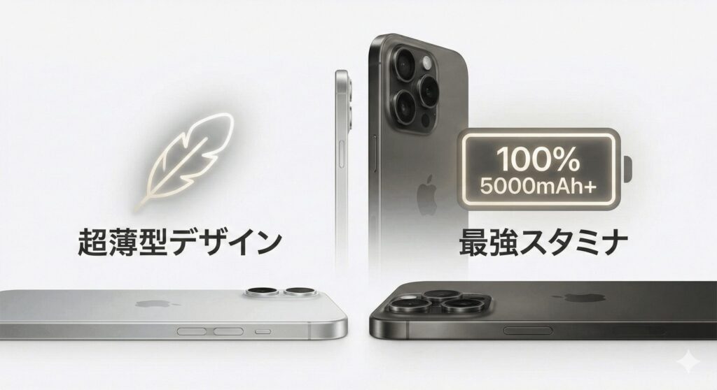 新登場と噂のiPhone 17 Airは、その驚異的な薄さが魅力ですが、バッテリーの観点からは少し注意が必要です。本体を約5mm〜6mmまで薄くするために、積めるバッテリー容量が犠牲になっているからです。