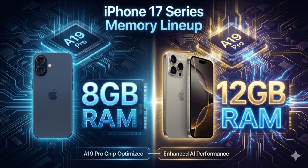 前作のiPhone 16シリーズでは、すべてのモデルが一律で8GBのメモリを搭載していました。しかし、今回のiPhone 17シリーズでは、ついにモデル間でのメモリ格差が明確に打ち出されています。
