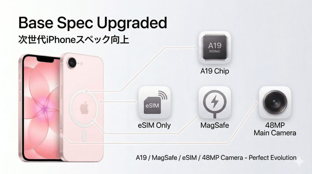 iPhone 17eは、一見すると前モデルのデザインを踏襲しているように見えますが、その中身は驚くほど別物に進化しています。ここでは、実際に使ってみて「ここが変わった!」と体感できる主要なスペックの進化ポイントについて、詳しく解説していきますね。