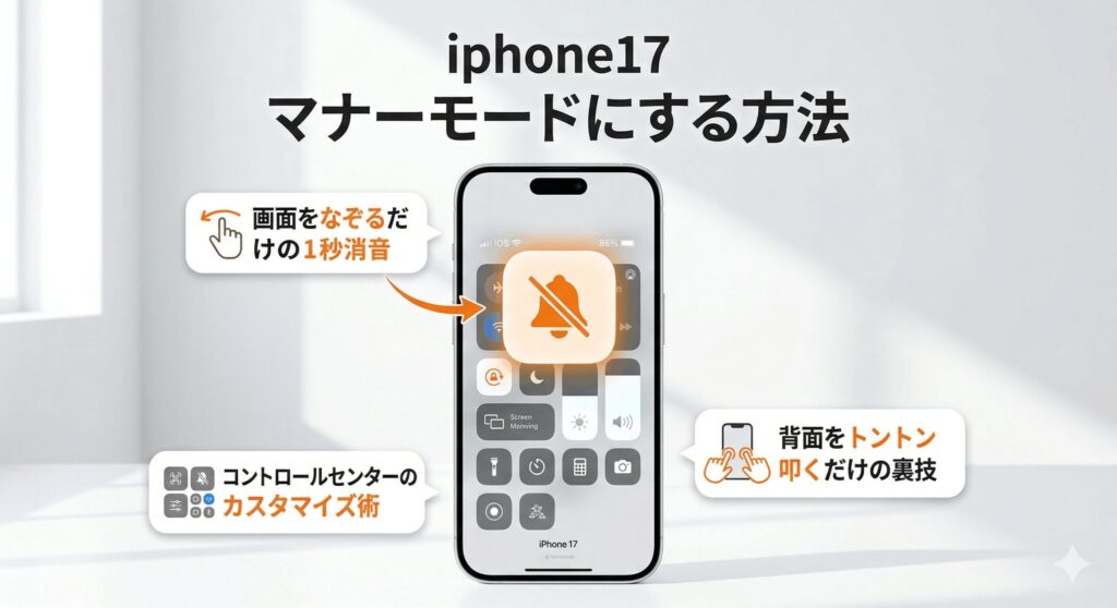 ここでは、物理スイッチが廃止されたiphone17において、マナーモードへ切り替えるための基本的な操作手順や、画面上から手軽に設定できる方法について順番に解説していきますね。