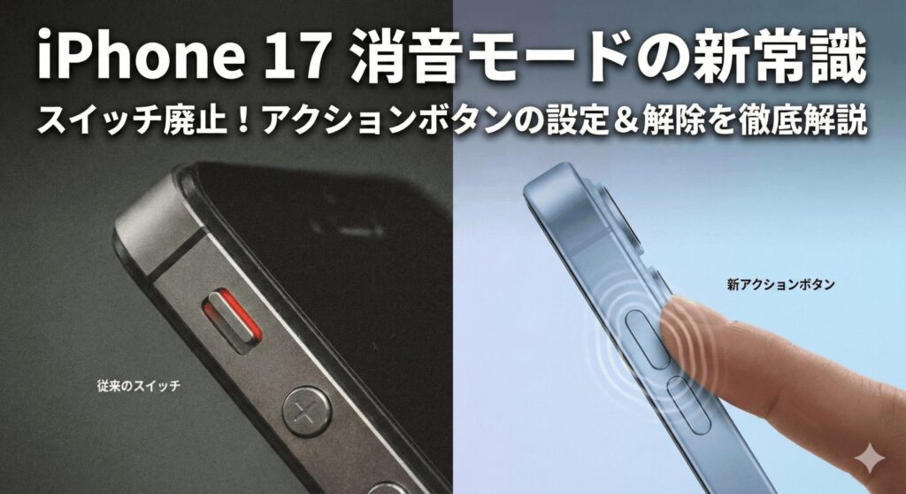 パソガジェなびのkeitoです。iPhone 17シリーズでは、長年親しまれた物理スイッチがついに廃止され、全モデル共通で「アクションボタン」へと統合されました。従来の操作に慣れていると「設定や解除はどうやるの?」「誤作動が心配」と戸惑うこともあるでしょう。