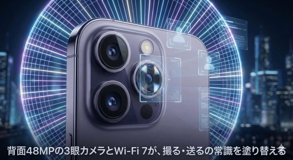 カメラシステムと通信環境の刷新も、iPhone17の大きな魅力です。単に画素数が増えるだけでなく、撮影後の活用方法や、通信の安定性そのものがアップデートされています。