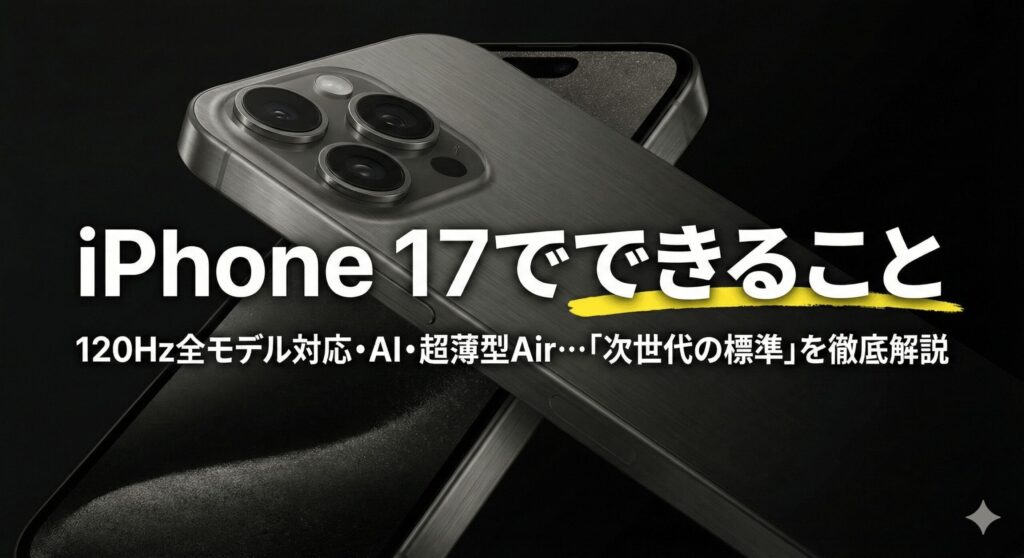 iPhone17シリーズは、全モデルでの120Hzディスプレイ対応や、新モデル「iPhone Air」の投入、そしてApple Intelligenceに最適化されたA19チップなど、まさに「次世代の標準」を定義するモデルになっています。