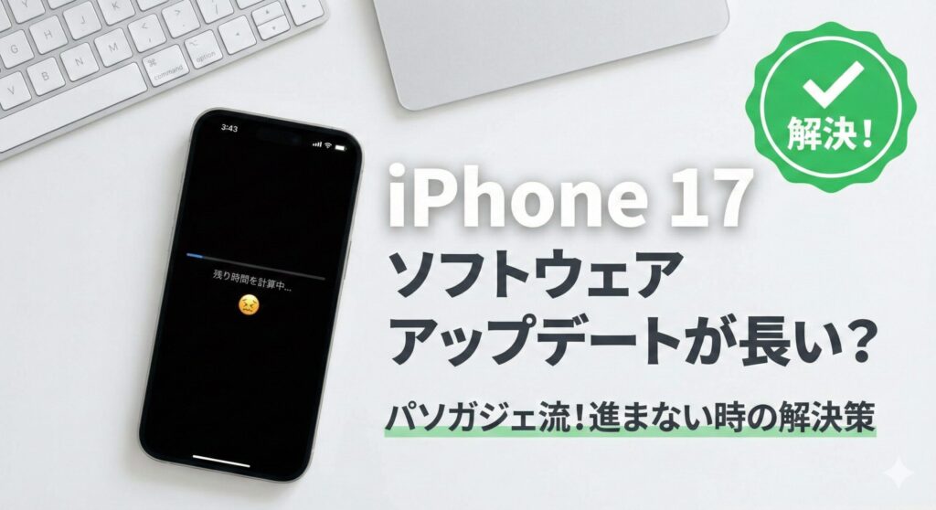 待望のiPhone 17を手に入れたのに、最初のソフトウェアアップデートが長すぎて使い始められず、ストレスを感じていませんか?「残り時間を計算中」や「準備中」のまま画面が動かないと、故障かと不安になるのも無理はありません。