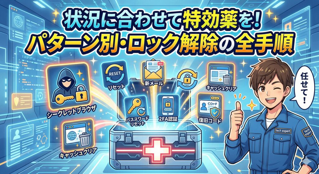 | アカウントロック | 短時間の入力ミス連打 | 24時間〜72時間の完全放置 |