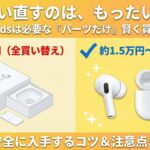 AppleCare+に入っていれば、水没も「過失による損傷」として安価に交換してもらえますが、未加入だと片耳だけで定価の半分近くかかってしまいます。両耳とケースすべてを交換すると、新品を買うのとほぼ変わらない金額になるので、慎重に検討する必要があります。正確な見積もりはApple公式サイトや正規サービスプロバイダで確認してくださいね。