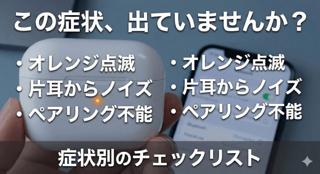 ケースのランプがオレンジ色(琥珀色)でパッパッと点滅している場合、それは「システムエラー」や「ペアリングの不整合」を意味しています。水没によってケースがイヤホンを正常に認識できなくなっているのかも。そんな時は、強制リセットを試してみましょう。