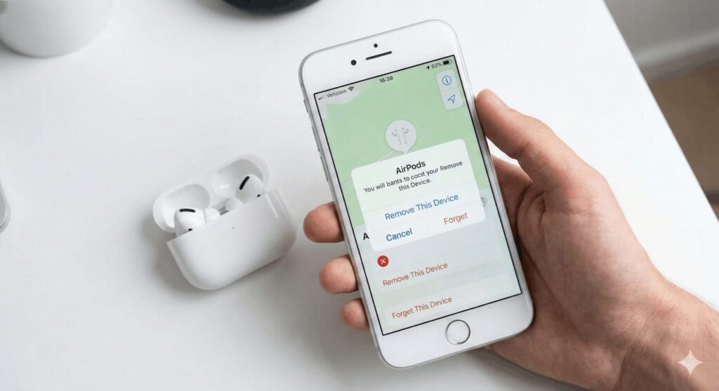 まず最初にやるべきことは、普段使っているiPhoneやiPadなどのデバイスから、AirPodsの接続情報を完全に消去することです。単に「接続を解除」するだけでは不十分で、「このデバイスの登録を解除」を選ぶ必要があります。