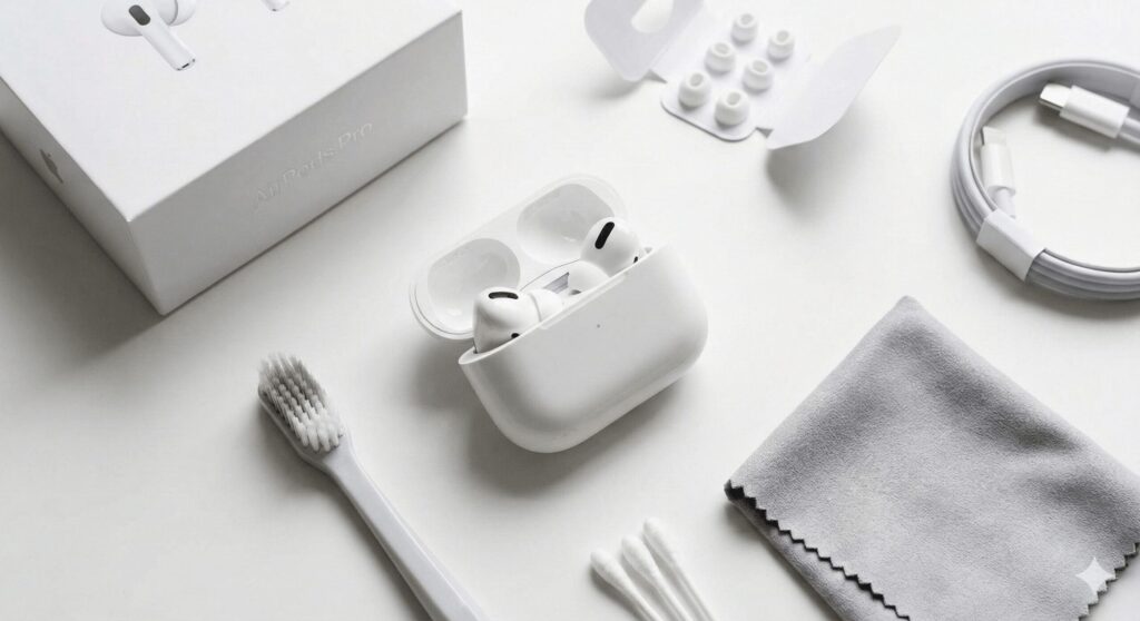 システム面が完璧になったら、次は「見た目」の勝負です。AirPodsは衛生面が重視される製品なので、汚れの有無で買取価格が30%以上変わることも珍しくありません。新品に近い状態まで磨き上げて、最高ランクの査定を勝ち取りましょう!