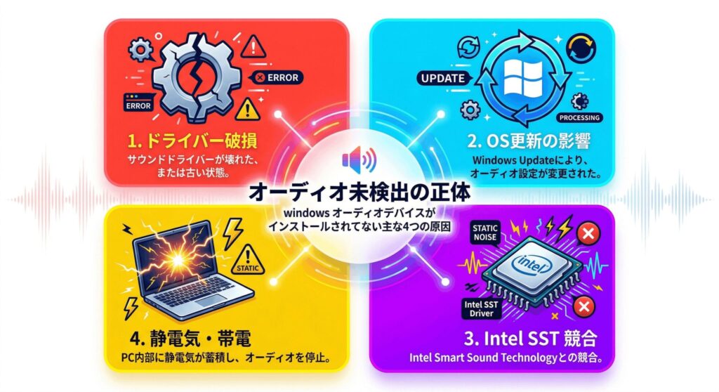 まずは、なぜあなたのパソコンで音が消えてしまったのか、その正体を探ってみましょう。原因がわかれば、対策もスムーズに見えてきますよ。