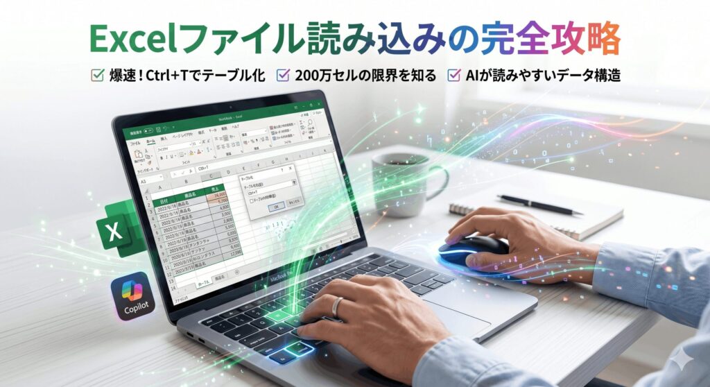 今回ご紹介したように、ファイルをクラウドに保存して自動保存をオンにすること、そしてデータを綺麗なテーブル形式に整えること。この基本のデータハイジーンを守るだけで、エラーの発生率は劇的に下がり、精度の高い分析結果を手に入れることができます。また、セル数やファイルサイズの上限といった制限を頭の片隅に入れておけば、巨大なデータに直面しても冷静に分割アプローチが取れるはずです。