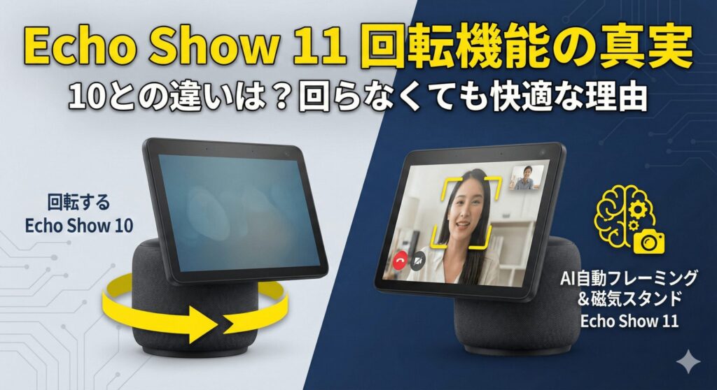 まずは、一番の疑問である「Echo Show 11は回るのか?」という点について、ガジェットオタクとしての視点から結論をお伝えしますね。ここを勘違いして買うと後悔しちゃうかもなので、要チェックです!