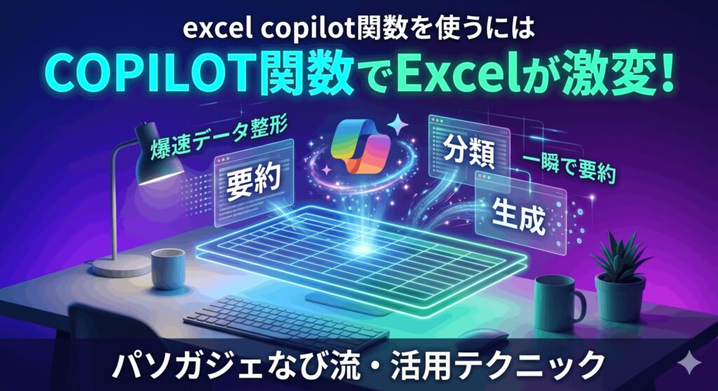 こんにちは、パソガジェなびのkeitoです。最近話題のExcel Copilot、もう試してみましたか。AIが数式を考えてくれたりデータを分析してくれたりと魔法のようなツールですが、いざexcel copilot関数を使うにはどうすればいいのか分からず立ち止まっている方も多いみたいですね。