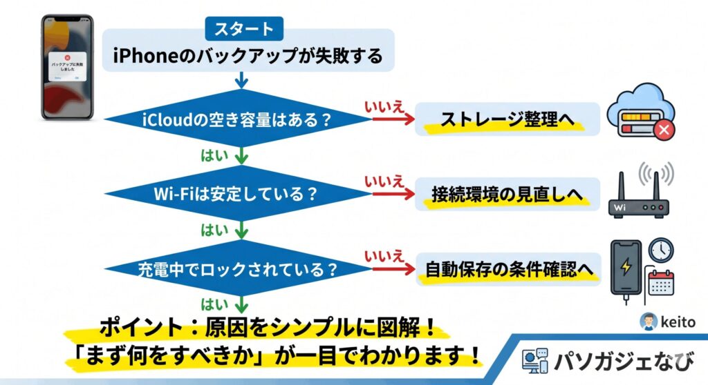 まずは多くのユーザーが利用しているiCloudバックアップについて見ていきましょう。ワイヤレスで便利な反面、ちょっとした設定や環境の不備でエラーになりやすいポイントがあるんです。基本的な解決策を一緒に確認しましょう。