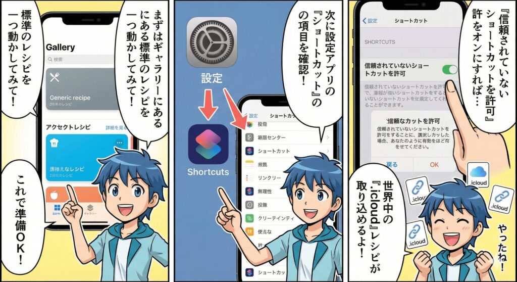 3. 信頼されていないショートカットの許可など、導入時のトラブル解決策