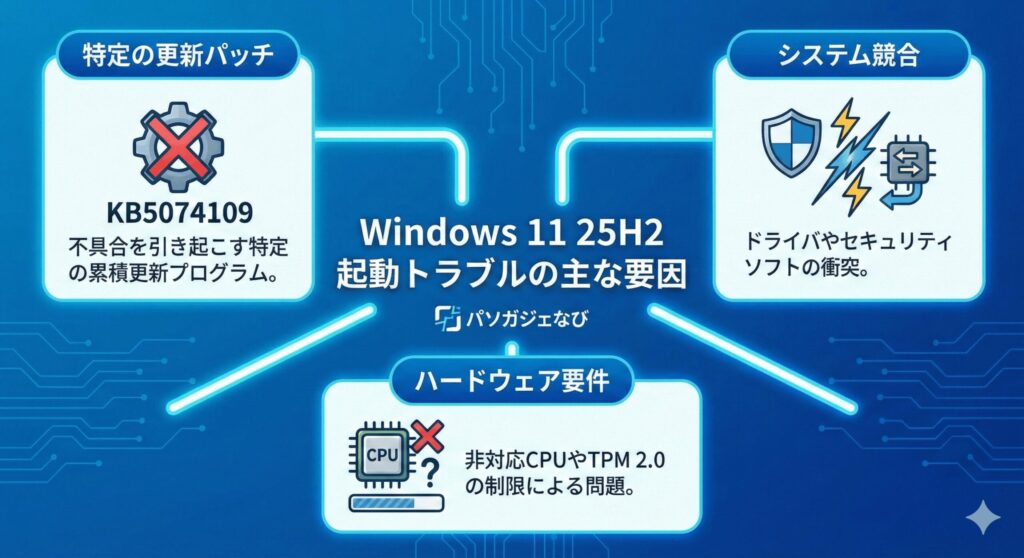 1. Windows 11 25H2で起動トラブルが発生する具体的な原因とエラーコード